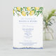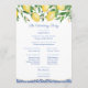 Bröllopsprogrammets utformning håller snabbt på att bli en modern klassiker med vattenfärgscitroner och en blå och vit vintage bakgrund.