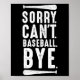 Sorry Can't Baseball Bye Poster