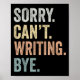 Sorry Can't Writing Bye Funny Writing Lovers Poster