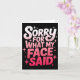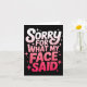 Sorry For What My Face Said Funny Sarcastic Minima Kort