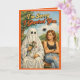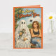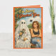 This charmingly awkward greeting card features a classic sheet-ghost offering a bouquet of flowers to a visibly unimpressed woman seated beside him on a park bench. With retro-inspired illustration, warm nostalgic tones, and bold lettering that reads “I’m Sorry I Ghosted You,” this design humorously captures the all-too-relatable dating phenomenon of disappearing without explanation.