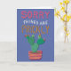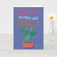 A hand-drawn prickly pear illustration with hand-lettered "Sorry Things Are Prickly" on a dusty blue-purple background, with a customizable inside message that starts as "Hope life stops poking at you soon." For anyone who needs to apologize or commiserate but draws the line at a card with a butterfly on it.