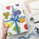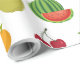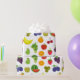 Färgrika sorter av frukt, mönster liknande Öga, bananer, äpple, druvor och ananas.