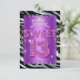 13-års Söt 13 Födelsedagsfest Söt 13 Födelsedagsfest Zebra Glitter Glam Tjejig Rosa Lila Svart Silver Tiara Tonåring Flicka. Elegant Klassisk Alla Tillfällen Födelsedagsinbjudan Mall