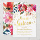 Söt 16-årsfest | Blommig guldglitter Inbjudningar