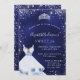 En modern, snyggt och glamorös inbjudan till en svensk 16, 16:e födelsedagsfest. En midnattsblå bakgrund med faux silver glitter damm, en tiara och en klänning. Den blå färg är ojämn. Namn är skrivet med ett modernt handskript i stil. Anpassa och lägg till information om party.