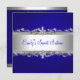 Silver Flower Trim on Cobalt Blue Spiral Blommigt Kärlek Hearts bjudande, Födelsedagsfest. Anpassa med din egen information. Matchande tillgänglig OSA.