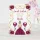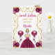 Den här inbjudan till födelsedagskort innehåller en elegant guld ram, en vacker prinsessa med blondinskt hår och en burgundröd klänning, blommor och ballong.