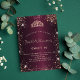 För en elegant 16, 16:e födelsedag. En burgundisk faux metallisk tittar bakgrund färg. Dekorerad med damm från ro faux glitter och en tiara, krona. Anpassa och lägg till information om namn, ålder och party. Namn är skrivet med ett handskript i stil