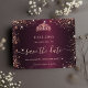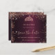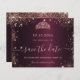 Ett giftigt och trendig Spara datumkortet för en svensk 16, 16:e födelsedagsfest. En burgundisk faux metallisk tittar bakgrund färg. Dekorerad med ro guld faux sparkles och en tiara, krona. Texten: Spara datumet skrivs med ett stort trendig-handskript i stil.