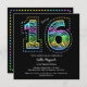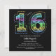 Siffran 16 i en galen typsnitt fylld med coola, ljusa färger POP på en svart bakgrund. En fantastisk födelsedagsinbjudan för en fantastisk födelsedag. Se mer på Zigglets här på Zazzle.