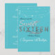 Söt 16 födelsedagsfest i tealblå glitter inbjudningar