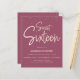 Den här eleganten och den här festliga inbjudan på 4,5" x 5,6" Sweet 16 Party Papper Lakan innehåller ord "Sweet sixteen" i ett modernt, guld-typsnitt (simulerad folie). Bakgrunden är rosa (äggplanta, magenta), men kan ändras till valfri färg. Information om party kan enkelt anpassas till din speciella händelse. Ett vackert, enkelt och billigt sätt att fira 16-årsdagen för gästerna i inbjudan. Kuvert säljs separat som ett annons.