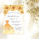 En modern, snyggt och glamorös inbjudan till en svensk 16, 16:e födelsedagsfest. En vit bakgrund på framsidan med faux guld glitter damm, en klänning och ro, blommigtar. Namn är skrivet med ett modernt handskript i stil. Anpassa och lägg till information om party. Tillbaka: en faux guld tittar bakgrund.