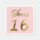 Söt 16 16:e födelsedag 16 år 16:e årsdagen Guld Titta typografi på Mjuk Rosa Bakgrund Pappra Party Napkins, du kan ändra bakgrunden till färg
