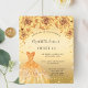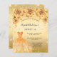 En modern, stilren och glamourös inbjudan till en Sweet 16, 16-årsfest. En falsk guld bakgrund med falskt guld glitterdamm, en klänning och rosor, blommor. Namnet skrivs med en modern handskriven stilsnitt. Anpassa och lägg till din festinformation.