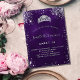 För en elegant 16, 16:e födelsedag. Lila färg, lila färg är ojämn. Dekorerad med faux silver glitter damm och en tiara, krona. Anpassa och lägg till information om namn, ålder och party. Namn är skrivet med ett handskript i stil