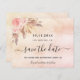 En flickig och trendig "Spara datumet"-kort för en Sweet 16, 16-årsfest. En rosafärgad, rose gold-färgad gradientbakgrund dekorerad med rosafärgade blommor och pampasgräs. Anpassa och lägg till datum och namn/ålder. Texten: Spara datumet är skriven med en stor trendig handskriven stil.
