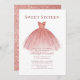Söt 16 Ro Guld Modern Dress Glitter-inbjudan. Med en söt rosa klänning och faux ro guld glitter och modernt manus, är denna födelsedagsinbjudan perfekt för en prinsessa. Byt enkelt ut informationen om party genom att klicka på knappen "Anpassa".