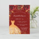 En modern, snyggt och glamorös inbjudan till en svensk 16, 16:e födelsedagsfest. En röd bakgrund med faux glitter damm från guld, en klänning och röd ros, blommigtar. Namn är skrivet med ett modernt handskript i stil. Anpassa och lägg till information om party.