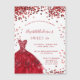 En modern, snyggt och glamorös magnetinbjudan till en svensk 16:e födelsedagsfest. En vit bakgrund med gnistor, en röd klänning. Namn är skrivet med ett modernt handskript i stil. Anpassa och lägg till information om party.