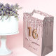 Elegant, klassisk, glamorös och giftig för en svensk 16:e födelsedagsfest. En rosa, dammig ro-gradientbakgrund. Dekorerad med faux glitter drops, färgdroppstift. Anpassa och lägg till ett namn. Med texten: Grattis på födelsedagen. Namn är skrivet med ett modernt handskript i stil. Nummer 16 skrivs med ett stil-teckensnitt med ballong.