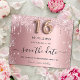 Observera att det här Spara datumet är pappert och mycket tunt. Kuvert ingår inte. Om du vill ha tjockare Spara datumkort (samma design) kan du besöka vår butik. Ett giftigt och trendig Spara datum för en svensk 16, 16:e födelsedagsfest. rosa faux metallisk tittar bakgrund som dekorerats med droppar och stoft från rosa och faux silver glitter. Anpassa och lägg till datum och namn/text. Texten: Spara datumet skrivs med ett stort trendig-handskript i stil med dekortecken. Nummer 16 med ett ro guld färgad-stil-typsnitt.