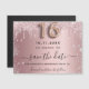 Ett giftigt och trendig Spara datummagnetkortet för en svensk 16, 16:e födelsedagsfest. rosa med rosa- och faux silver-droppar. Anpassa och lägg till datum och namn/text. Texten: Spara datumet skrivs med ett stort trendig-handskript i stil med dekortecken. Nummer 16 med ett ro guld färgad-stil-typsnitt.