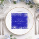 En napkin för en girig och glamorös sötad 16, 16:e födelsedagsfesten. Royalets blå bakgrund med elegant faux silver stoft. Anpassa och lägg till ett namn. Vit brev. Sweet sixteen är skrivet med ett modernt handskript i stil med dekorationer.