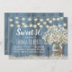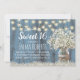 Rustic Baby's Band Blommigt Burk Dusty Blue Barn Wood & String Ljus Sweet 16 inbjudningar.