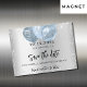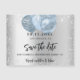 Ett giftigt och trendig Spara datummagnetkortet för en svensk 16, 16:e födelsedagsfest. En faux silver tittar bakgrund med faux glitter damm och blå ballonger från silver. Anpassa och lägg till datum och namn/ålder. Texten: Spara datumet skrivs med ett stort trendig-handskript i stil.