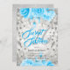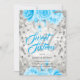 Elegant Sweet 16 Födelsedagsfest inbjudan-mall med motiv för Silver och blå Blommigt w/glitter på mousserande bakgrund för silver. Imponera dina vänner med den här sofistikerade och elegant "Sweet sixteen"-inbjudan. Helt anpassade!