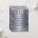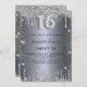 En modern, snyggt och glamorös inbjudan till en flickvän 16, 16:e födelsedagsfesten. En faux silver-tittar bakgrund, dekorerad med glitter-damm. Anpassa och lägg till ditt namn och information om party. Nummer 16 skrivs med ett stil-skript med ballong.