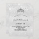 För en elegant 16, 16:e födelsedag. En faux silver tittar bakgrund. Dekorerad med faux sparkles och en tiara, krona. Anpassa och lägg till information om namn, ålder och party. Namn är skrivet med ett handskript i stil