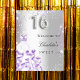 Elegant och glamorös och giftig för en svensk 16, 16:e födelsedagsfest. En faux silver metallisk tittar bakgrund som dekoreras med lila och faux silver glitter stoft. Anpassa och lägg till ett namn. Nummer 16 skrivs med ett stil-teckensnitt med ballong. Bakåt: ingen design