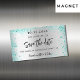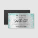 Ett giftigt och trendig Spara datummagnetkortet för en svensk 16, 16:e födelsedagsfest. En faux silver tittar bakgrund som dekoreras med teal, grönt faux glitter stoft. Anpassa och lägg till datum och namn/ålder. Texten: Spara datumet skrivs med ett stort trendig-handskript i stil.