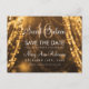 Elegant Hollywood "Red Carpet Stil" Sweet 16 "Save the Date"-design med Guld String Ljus, egna namn och datumtext.
