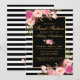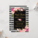 Söt 16-årsdag Strippad rosa blommig guld inbjudningskort - Svarta och vita ränder