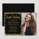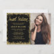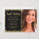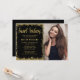 Modern svart och guld faux glitter 16 fotoinbjudningar. Trendiget sweet sixteen inbjudan är lätt att anpassa för party. Mönster är platta tryckta illustrationer/grafik - INTE FATUAL GULD GLITTER.