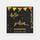Elegant och modern för en gigantisk 16:e födelsedagsfest. Chic trendig svart bakgrund och faux guld text skriven med ett trendig handskript i stil: hej sexton. Med gyllene prickar, buntar flaggor och party strömmar som dekoration. Mall för namn och datum.