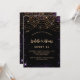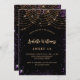 För en elegant 16, 16:e födelsedag. Snyggtens svarta bakgrund. Dekorerad med damm från lila faux guld glitter och med golden light-strängar. Anpassa och lägg till information om namn, ålder och party. Namn är skrivet med ett handskript i stil