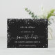 Ett giftigt och trendig Spara datumkortet för en svensk 16:e födelsedagsfest. En klassisk svart bakgrund som dekoreras med faux silver glitter damm. Anpassa och lägg till datum och namn/ålder. Texten: Spara datumet skrivs med ett stort trendig-handskript i stil.