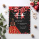 En modern, snyggt och glamorös inbjudan till en svensk 16, 16:e födelsedagsfest. En svart bakgrund med gnistor, en röd klänning och en röd båge. Namn är skrivet med ett modernt handskript i stil. Anpassa och lägg till information om party. 1 lakan = 1 inbjudan tryckt kant till kant.