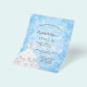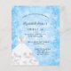 För en elegant Sweet 16, 16-årsdag. En blå snöflinga bakgrund. Dekorerad med en vit klänning för en vinter-värld-tema fest. Personifiera och lägg till namn, ålder och festdetaljer. Namnet skrivs med en handskriven stilspråk