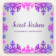 Winter snöflake söt 16-födelsedag med texturerat snöflingor i nyanser av lila, rosa och blått på en silver-övertoningsbakgrund