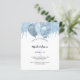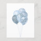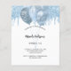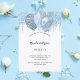 En vit bakgrund. Dekoreras med ljusblå faux glitter-droppar, färgdroppstift och ballonger. Personalisera och närmare uppgifter om namn och party. 1 lakan = 1 inbjudan tryckt kant till kant.