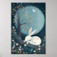 Affisch med en söt kanin som sover under månen och stjärnorna. Söt dekoration för ett vackert barnrum eller förlossningsavdelning. Illustration tillgänglig som tryck och nedladdningsbar fil.