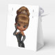 Förtjusande afroamerikanska prinsessa diva födelsedagspresenter. Du kan välja bakgrundsfärg, lägga till eller ta bort text och ändra färg på bandet på denna roliga och söta afroamerikanska kvinnas presentask. Texten under klaffen lyder "Tack, kära!" och kan tas bort eller ändras.