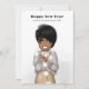 Fira det nya året med det här snygga och stilrena kortet som visar en afroamerikansk kvinna insvept i lysande slingor. Den minimalistiska designen kompletteras av budskapet "Gott nytt år" och det anpassningsbara året "20XX", vilket gör det perfekt för att skicka moderna och hjärtliga nyårshälsningar till familj och vänner.