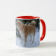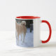 söt akita kysser snögubbe snö hund mugg